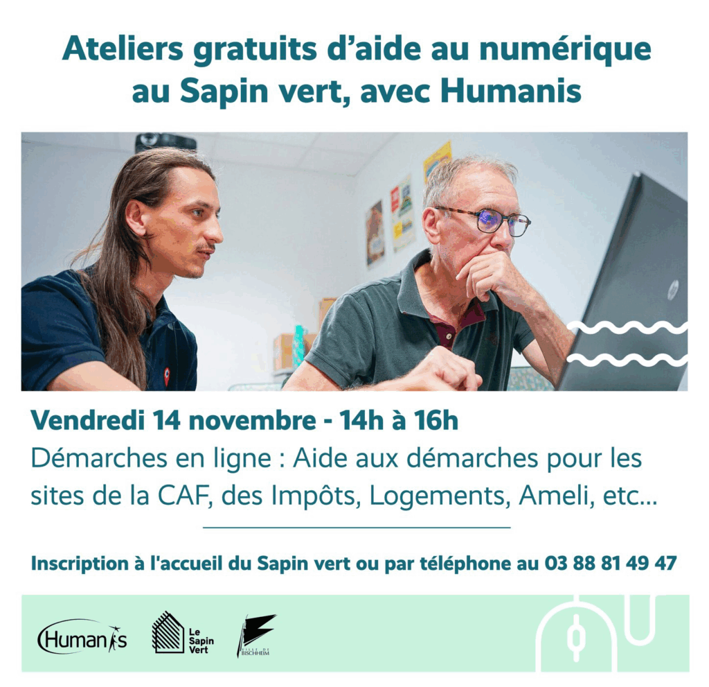 Le Sapin Vert propose, en partenariat avec le Collectif HUMANIS, un atelier gratuit d’aide au numérique pour accompagner les participants dans leurs démarches administratives en ligne 💻​