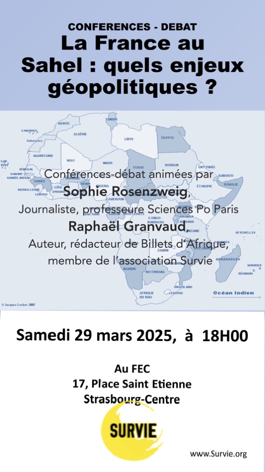 L’association Survie Bas-Rhin organise une conférence-débat sur la thématique : « La France au Sahel : quels enjeux géopolitiques ? »